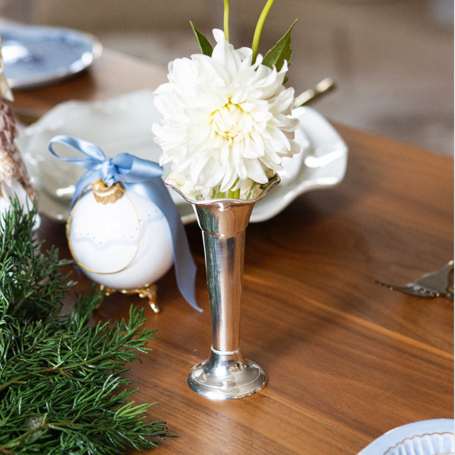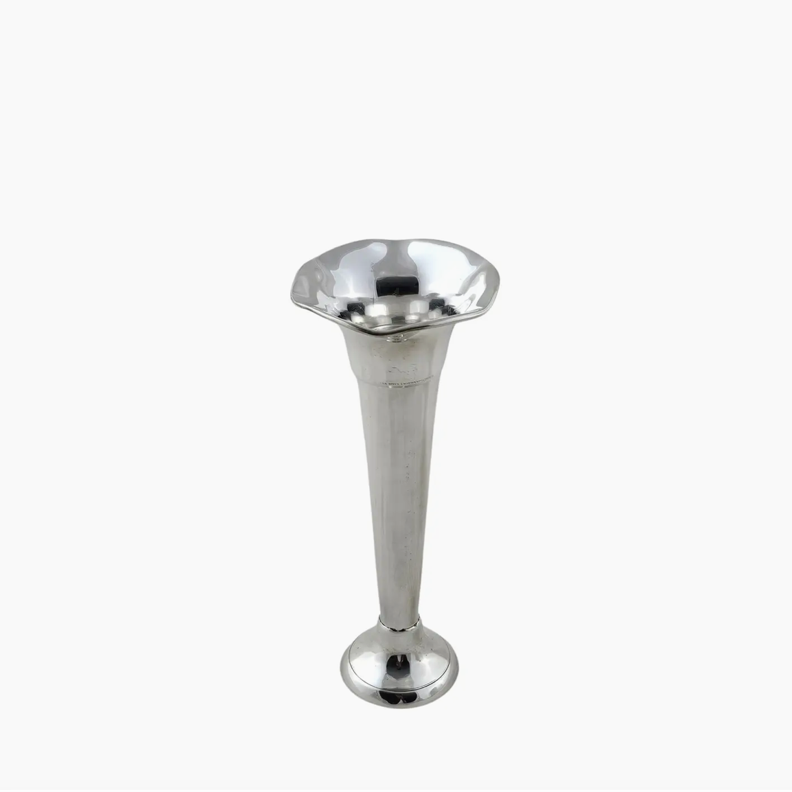 Regular price $85.00Wavy Edge 5.5"h Silver Plate Material and Weight: This vase is crafted from silver-plate which gives it a lustrous appearance. The heavy weight suggests durability and stability. Design Features: The wavy edge adds a touch of elegance and uniqueness to the vase. Its curved and undulating rim creates visual interest. The overall shape may vary, but the wavy edge remains a consistent feature. Functionality and Display: Use this vase to showcase fresh flowers, dried arrangements, or decorative branches. Its silver-plated surface reflects light beautifully, making it an eye-catching centerpiece. Whether placed on a dining table, mantelpiece, or sideboard, this vase adds sophistication to any room.