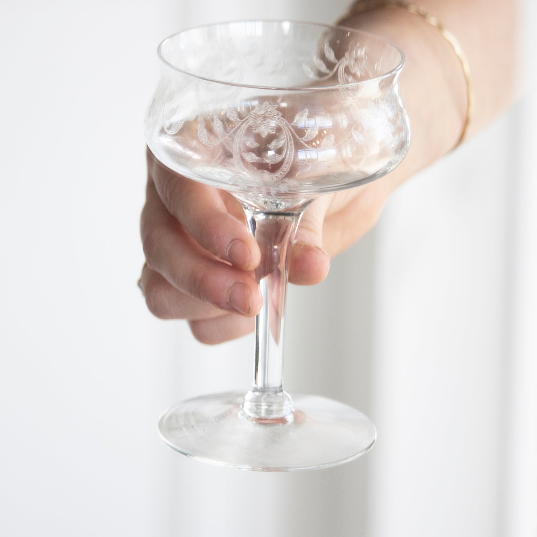 Vintage Etched Coupe Glassware No. 4 - Set of 4