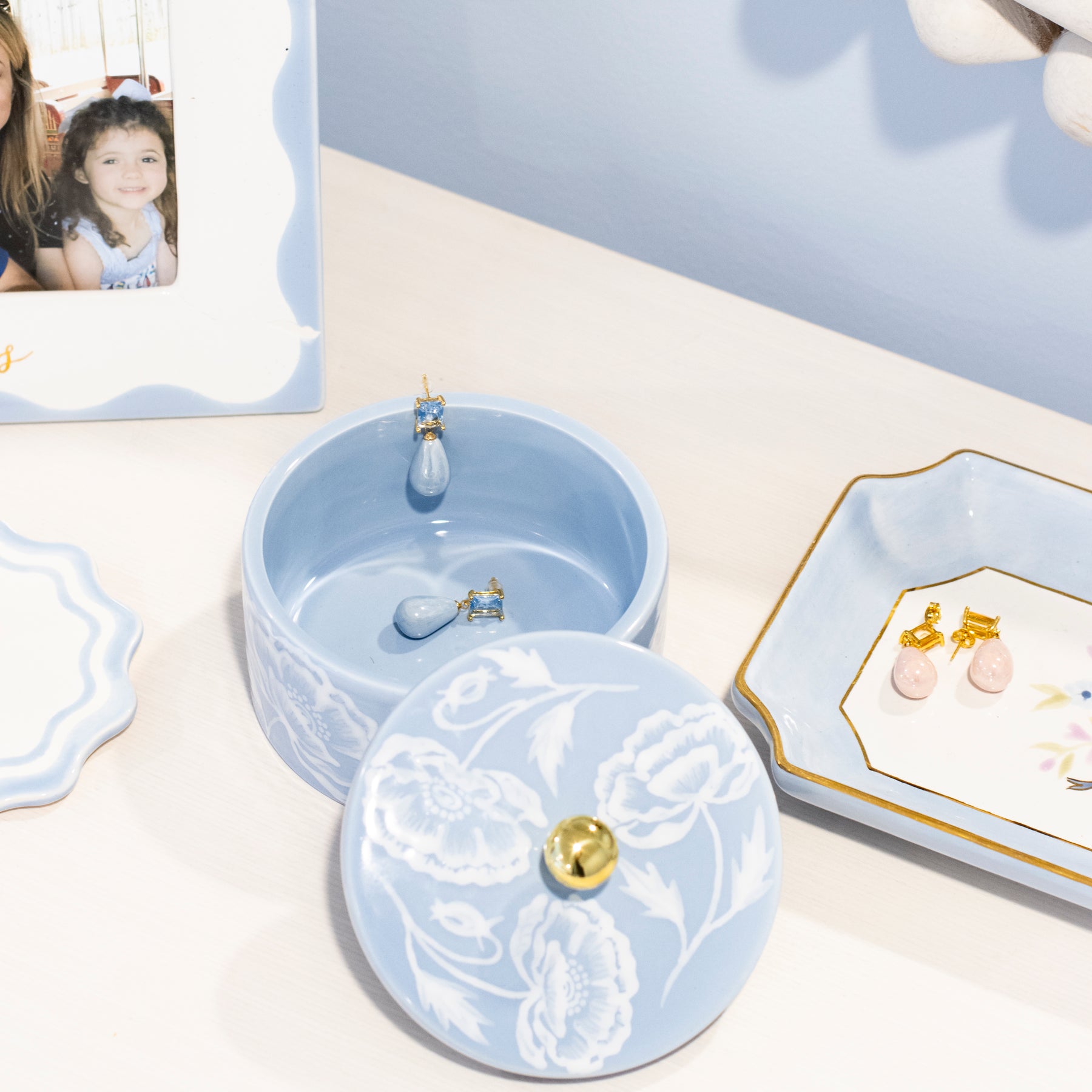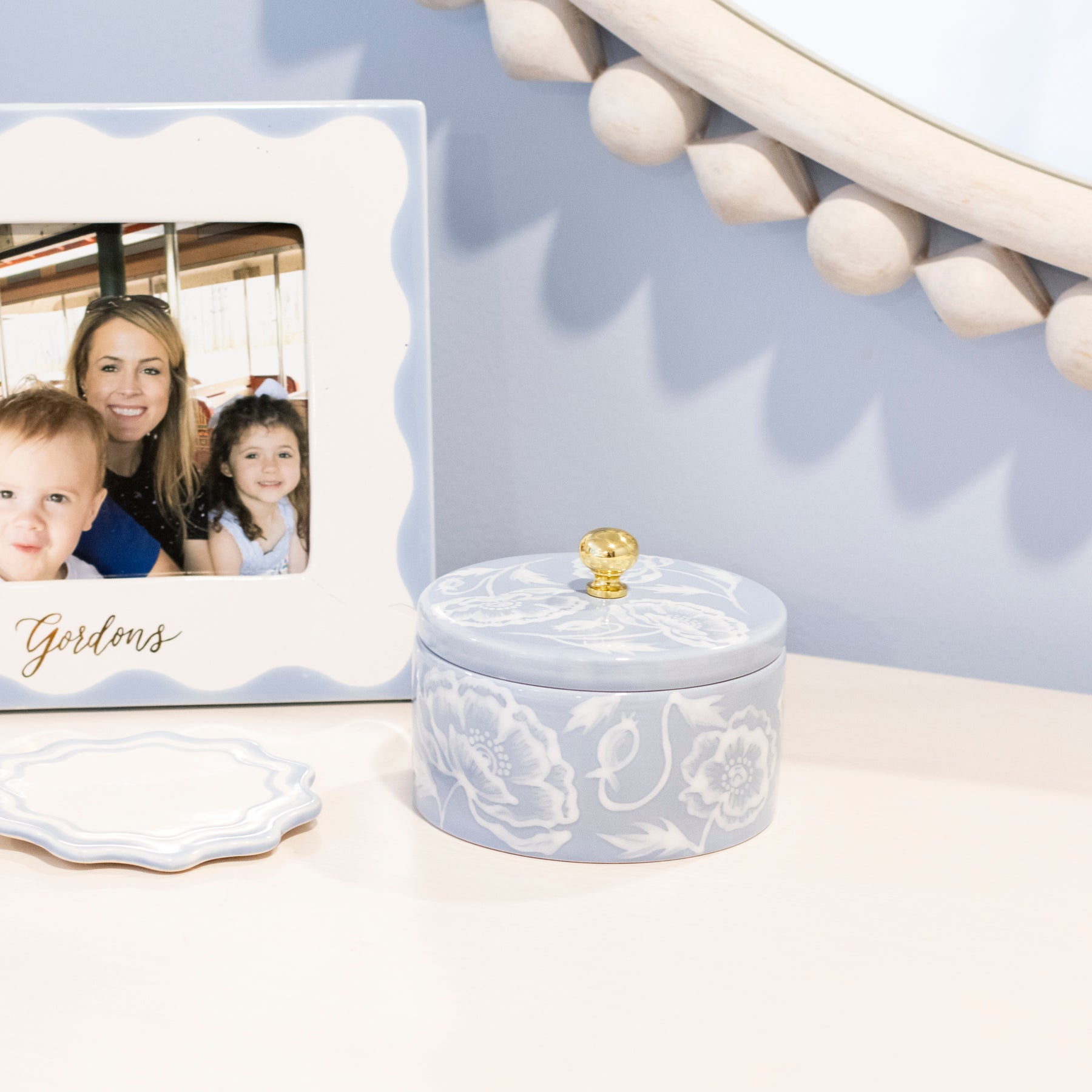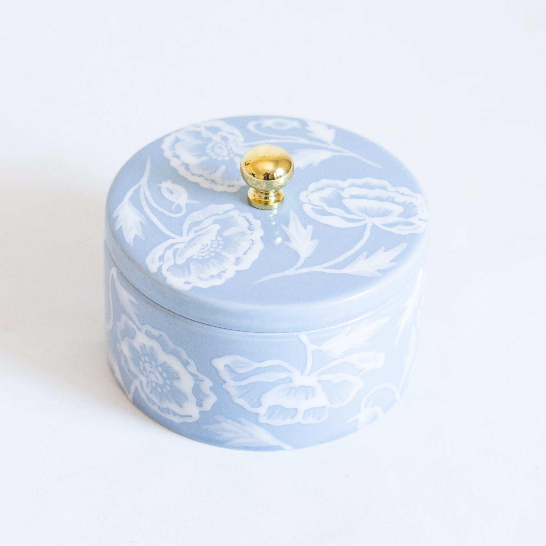 Our newest trinket box that is practical and chic. This Trouvé Box features our Classic Poppy pattern with a polish brass knob.