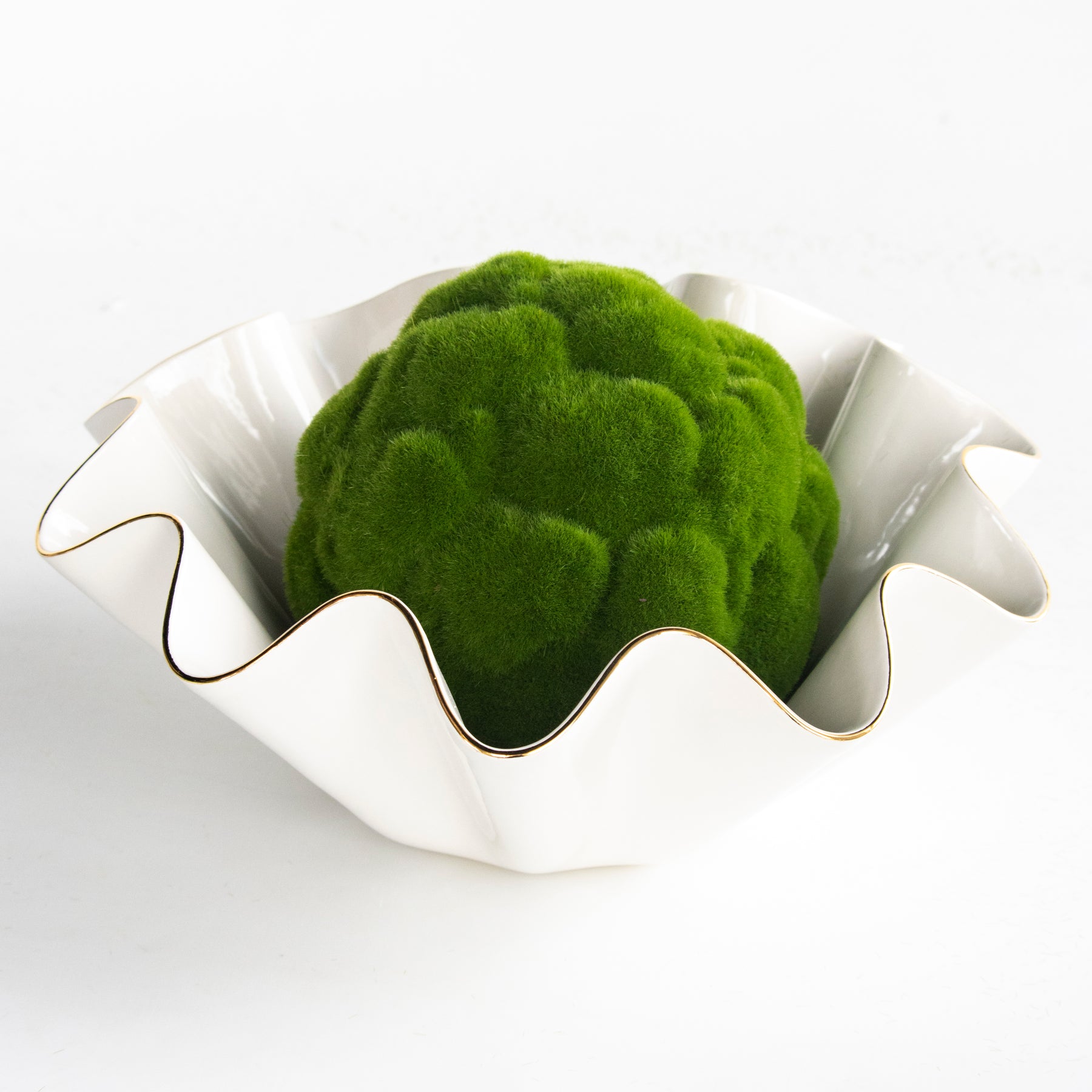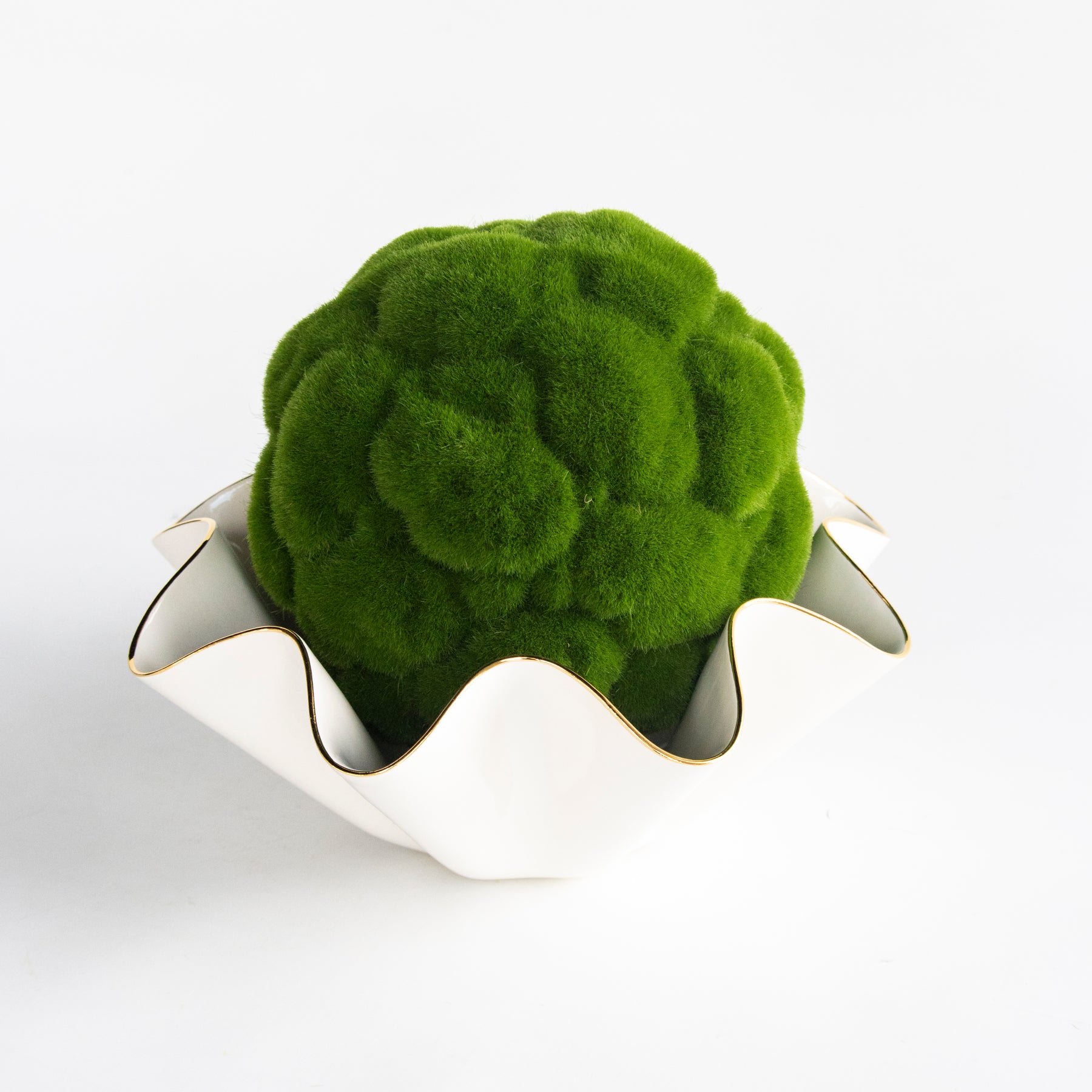 Add an organic element to your SGP wavy bowl, sprinkle several amongst indoor plants for added dimension, or place it on a desktop for a refreshing sight during your workday. The Faux Mood Moss Ball can also be strung together in a garland for an enchanting woodland aesthetic or used to adorn your festive holiday tree. Curated by Susan Gordon Pottery.
