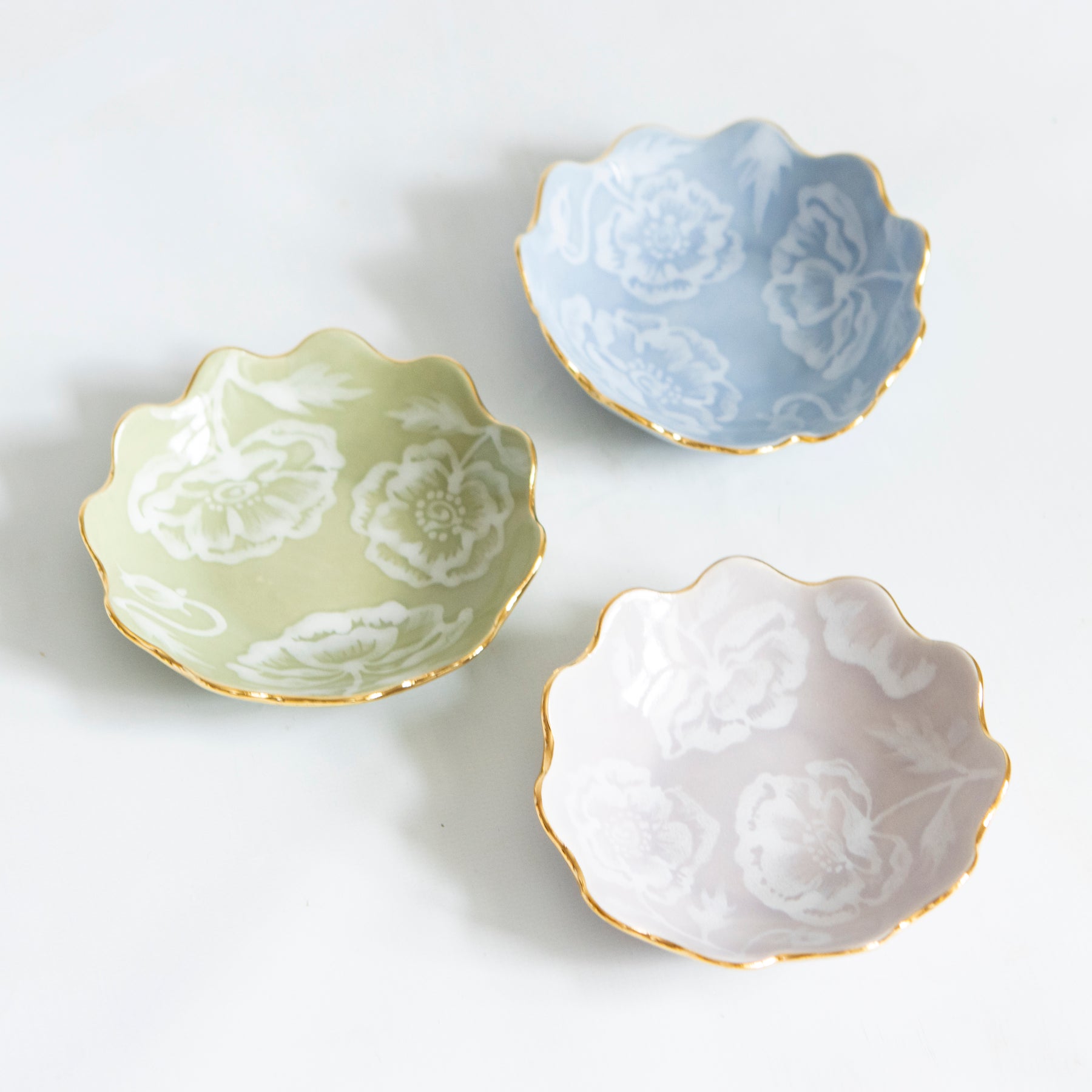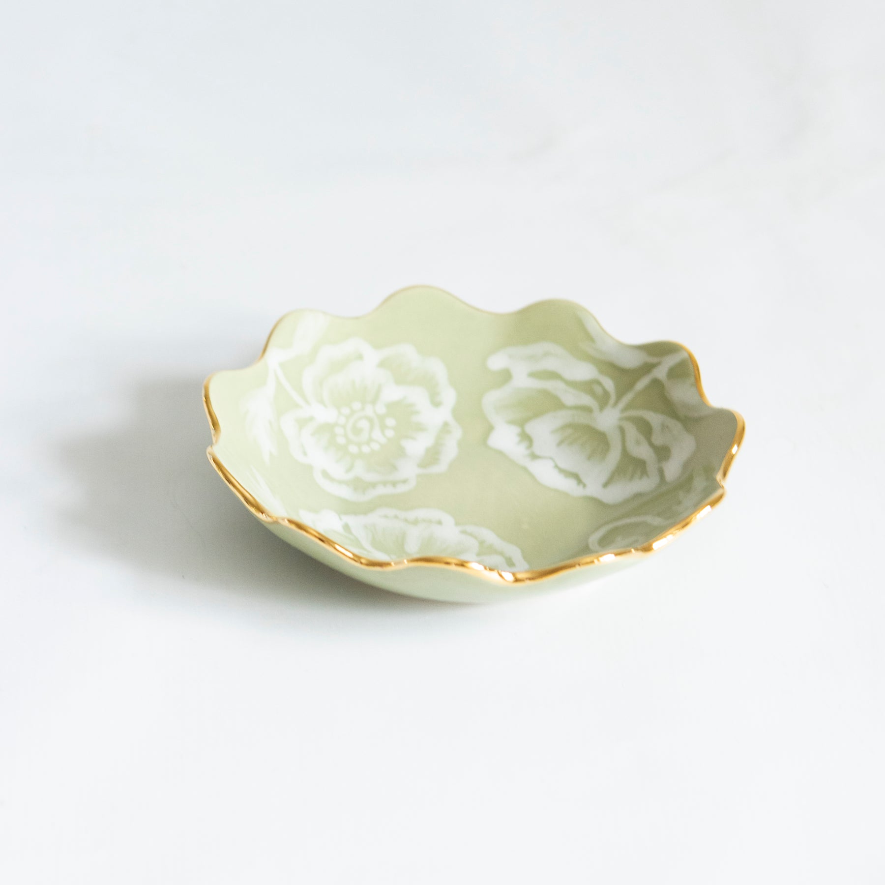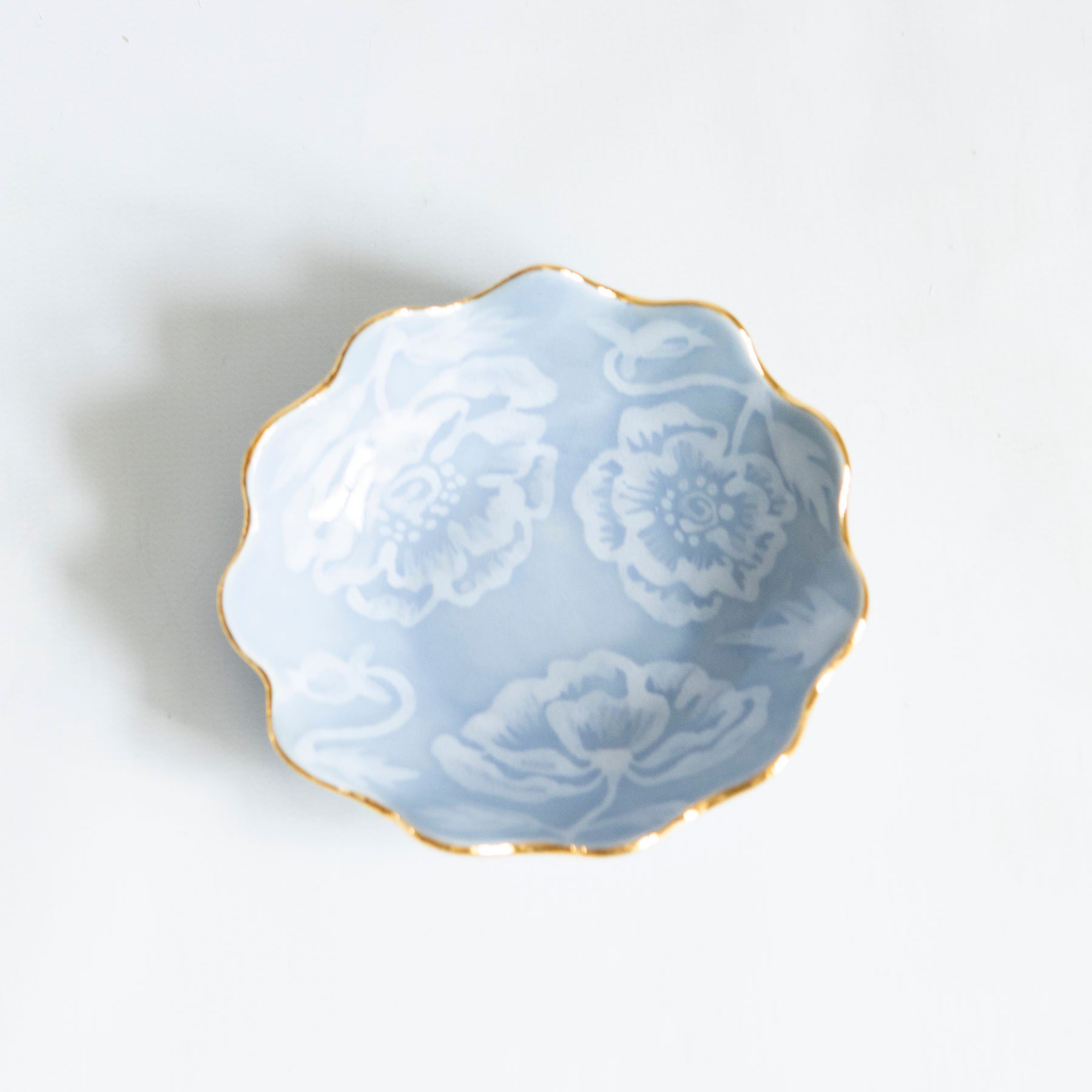 Handmade ceramic dish with high fire stoneware clay and glazes. Hand painted poppy pattern and adorned with low fire 22K edges.