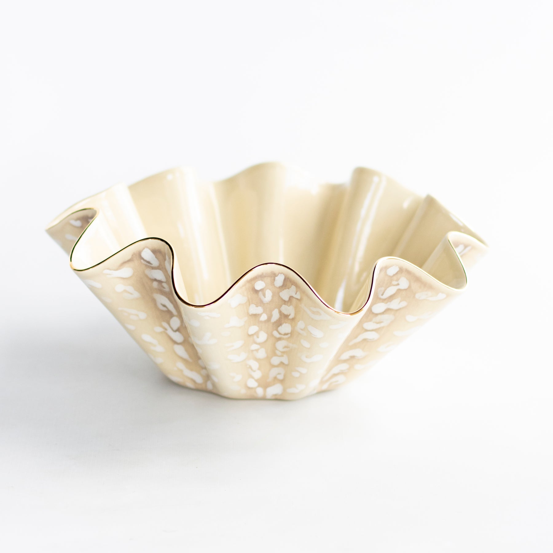 Handmade ceramic abstract bowl with high fire stoneware clay and glazes. Hand painted & adorned with low fire 22K gold edge.