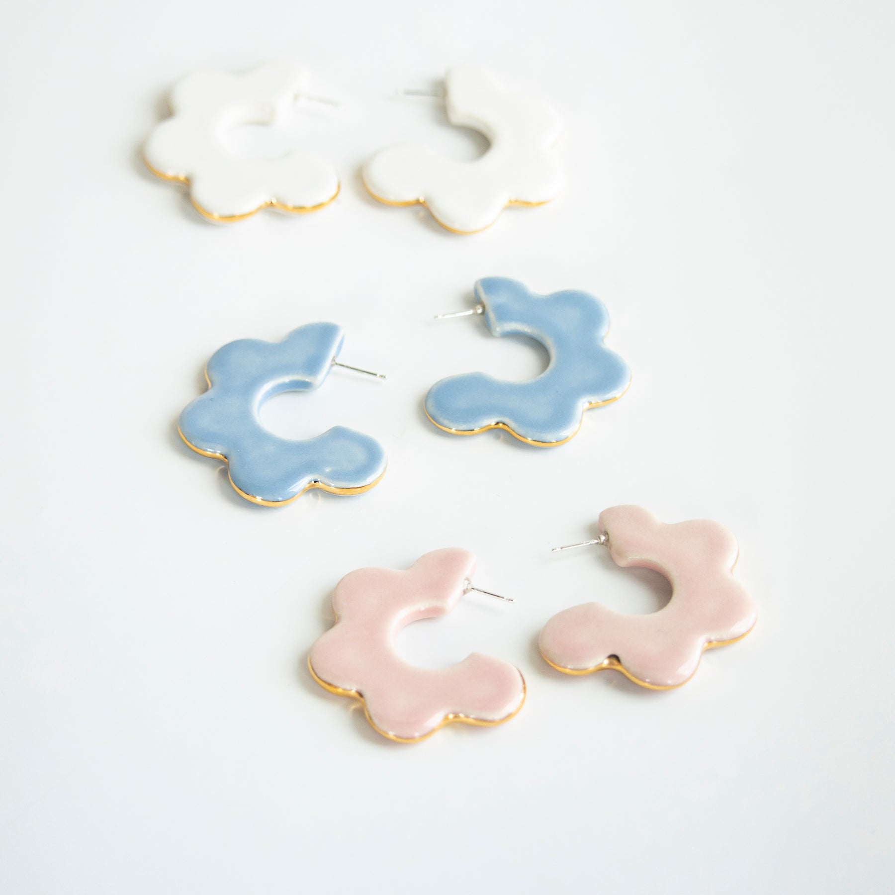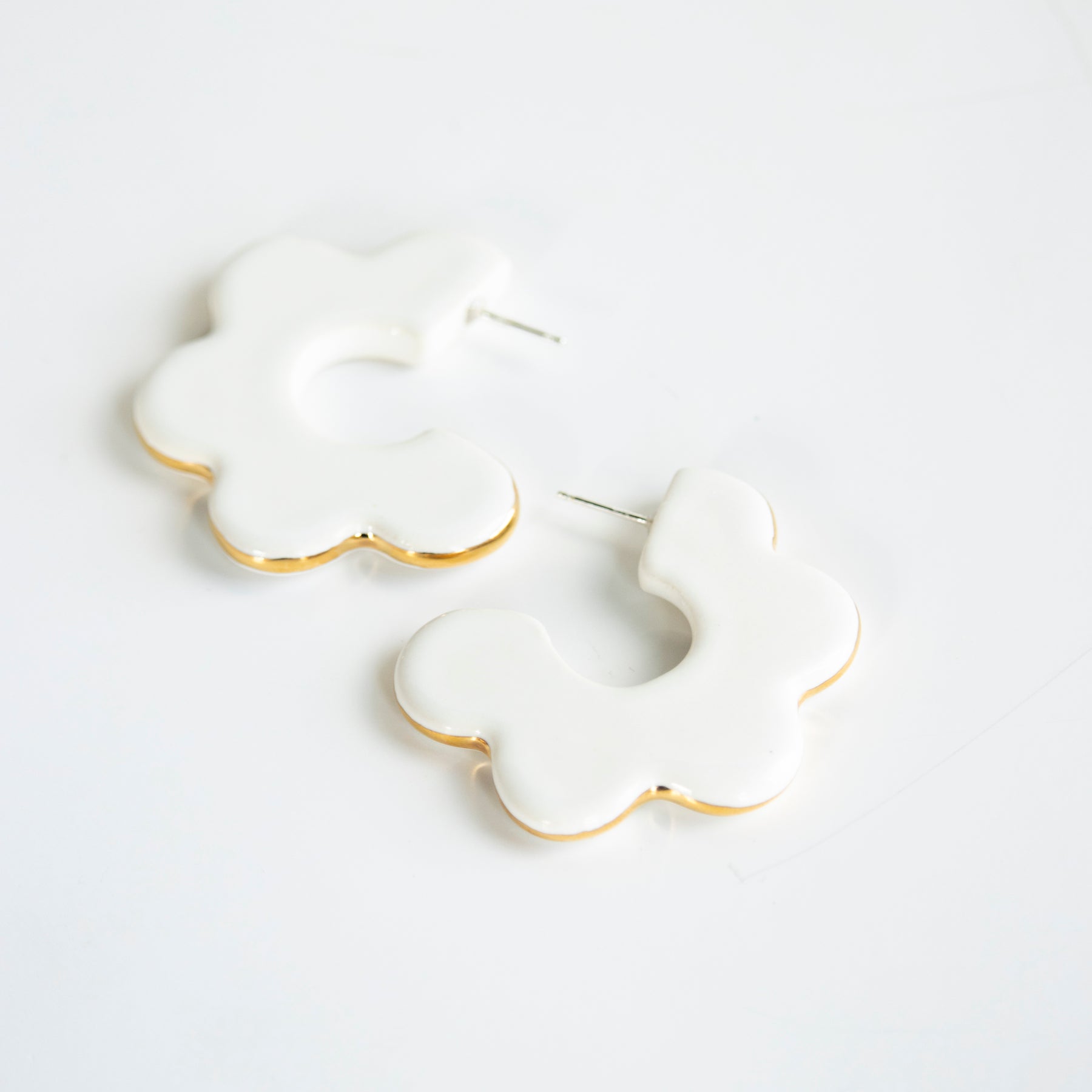 They're back! The Farrah Hoops - inspired by the fabulous Farrah Fawcett, have returned to SGP. Handmade scallop earrings with a delicate 22k gold detail that adds sparkle and polish to these whimsical hoops.