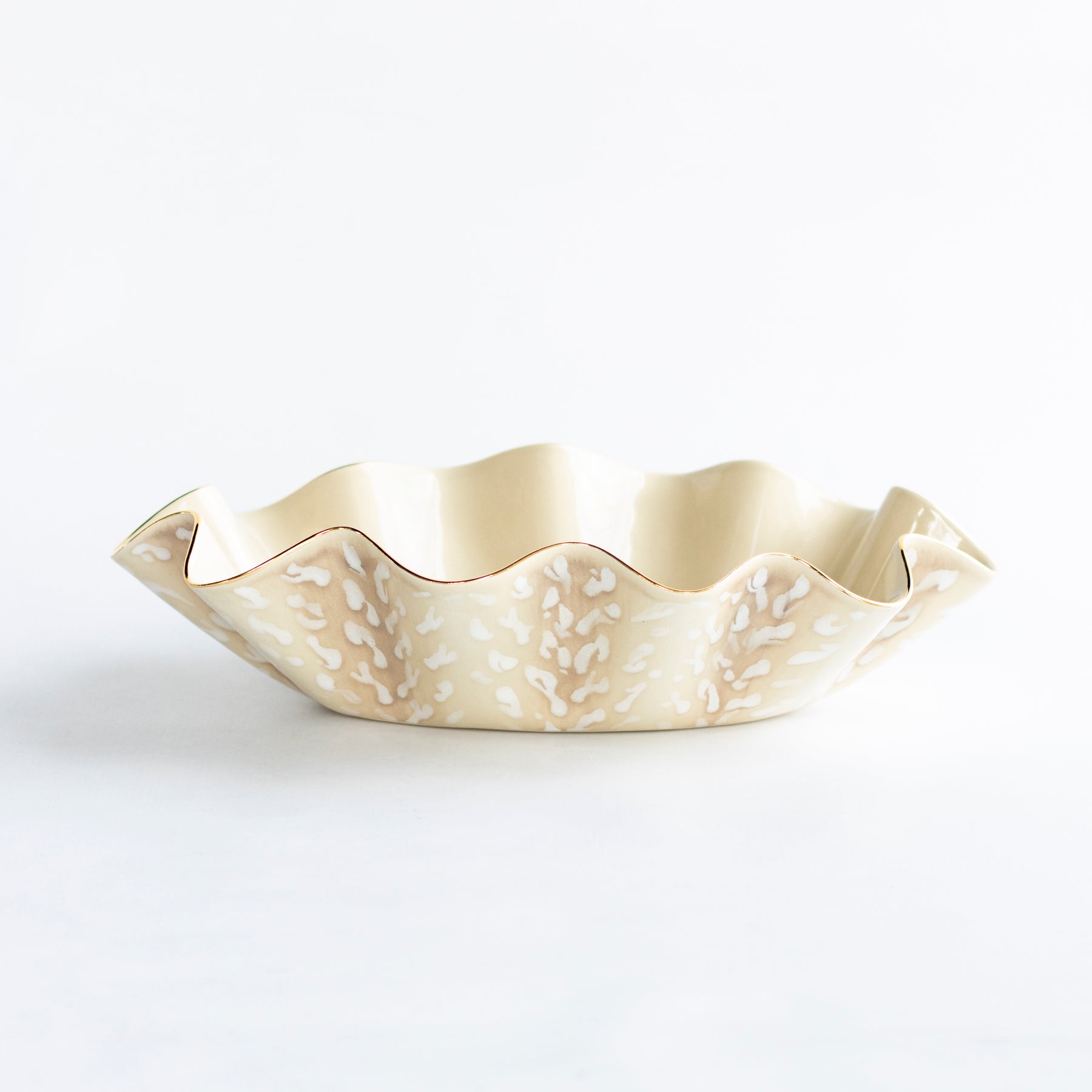 Our NEW Antelope Collection features hand-painted pottery inspired by Stark Carpet’s “antelope” pattern that became popular in the 1970's. Each bowl is handmade with graceful wavy edges, hand painted with layered brushstrokes that create a soft, organic design, and finished with 22k gold.