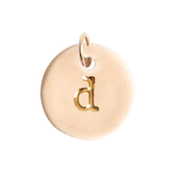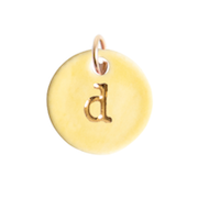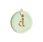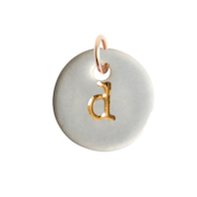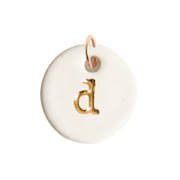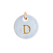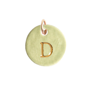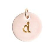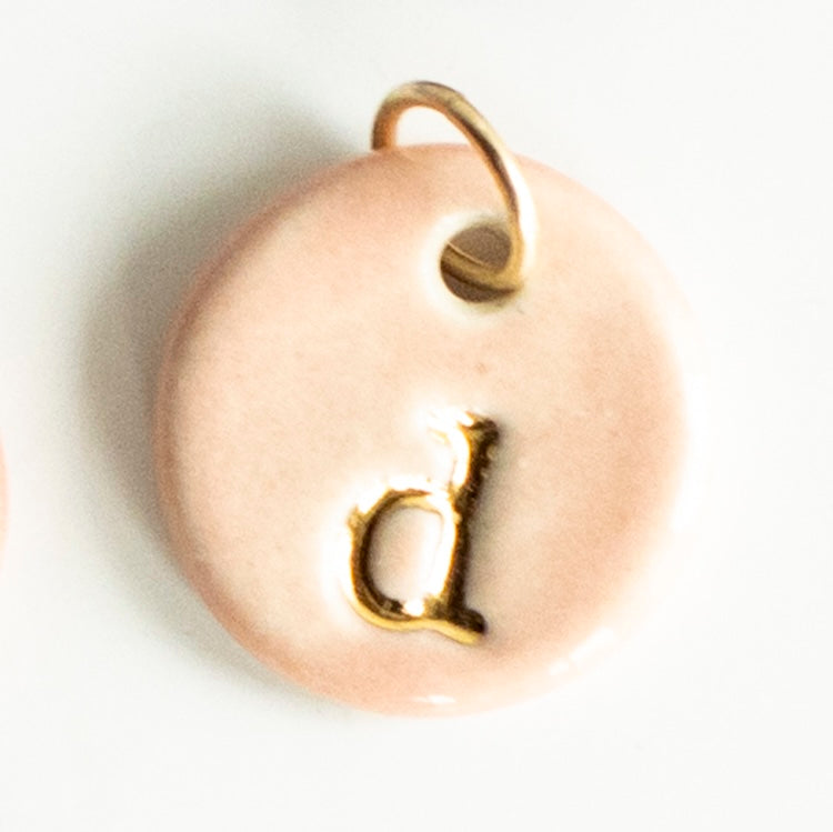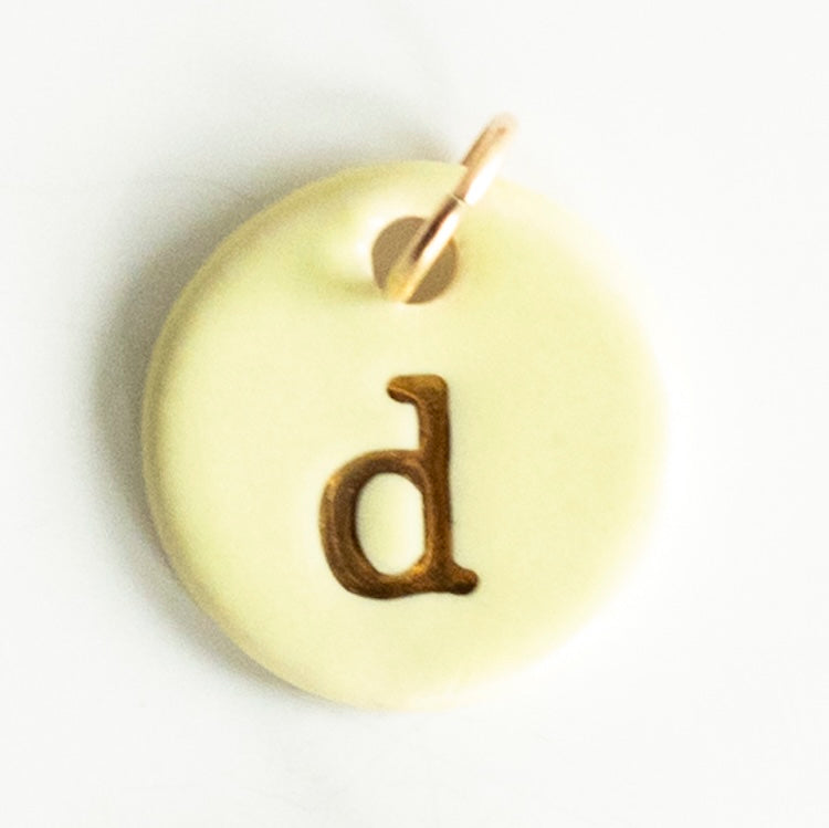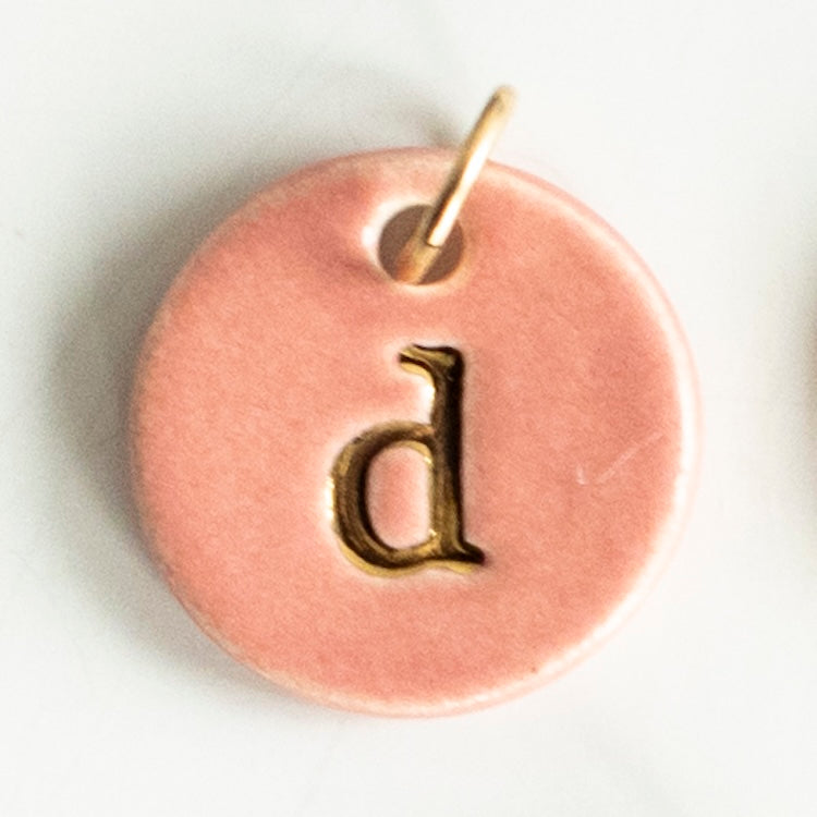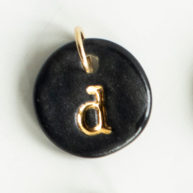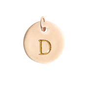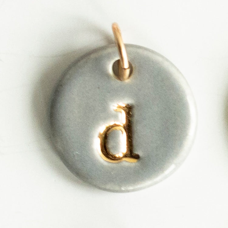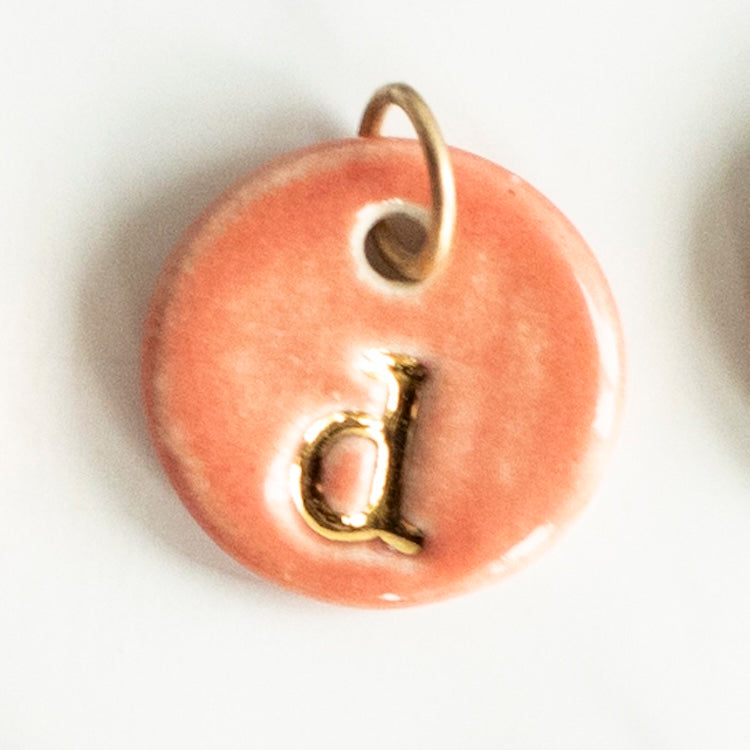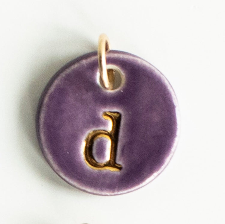 Charms are glazed on both sides for strength and durability; with a 'D' Initial impressed and gilded with 22k gold luster. Each charm measures about half an inch and jump rings are 14/20 gold filled. Each pendant will vary somewhat in color and finish as each are handmade.