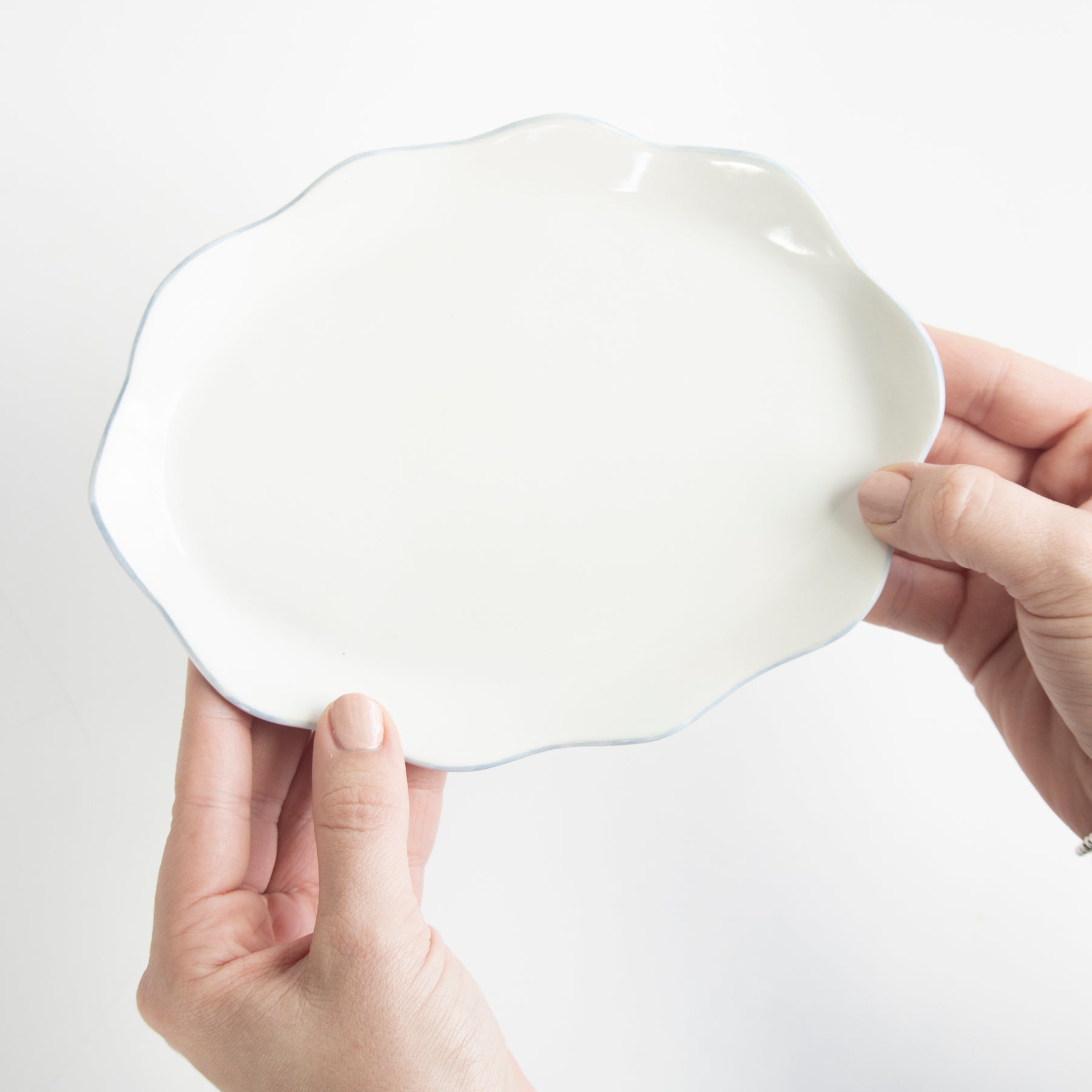 Our scalloped collection is a new translation of our iconic wavy look, a fresh series of small trays that could find themselves useful in any room in one’s house. From charcuterie boards, to soap dishes, to jewelry trays, these lovely little pieces are the perfect finishing touch and to me, embody the zeitgeist of the grand-millennial dream: pretty, happy, and charming.