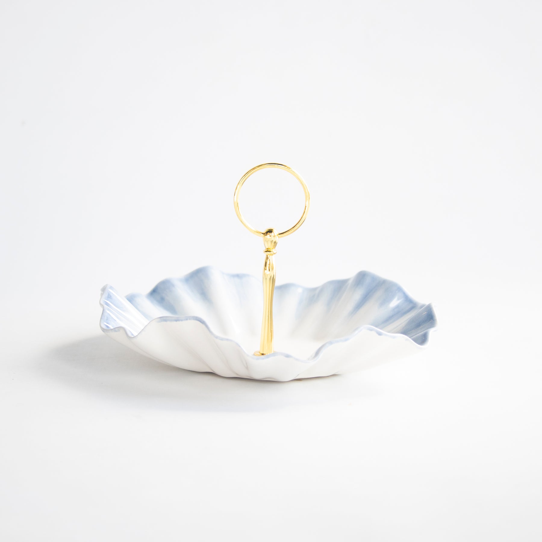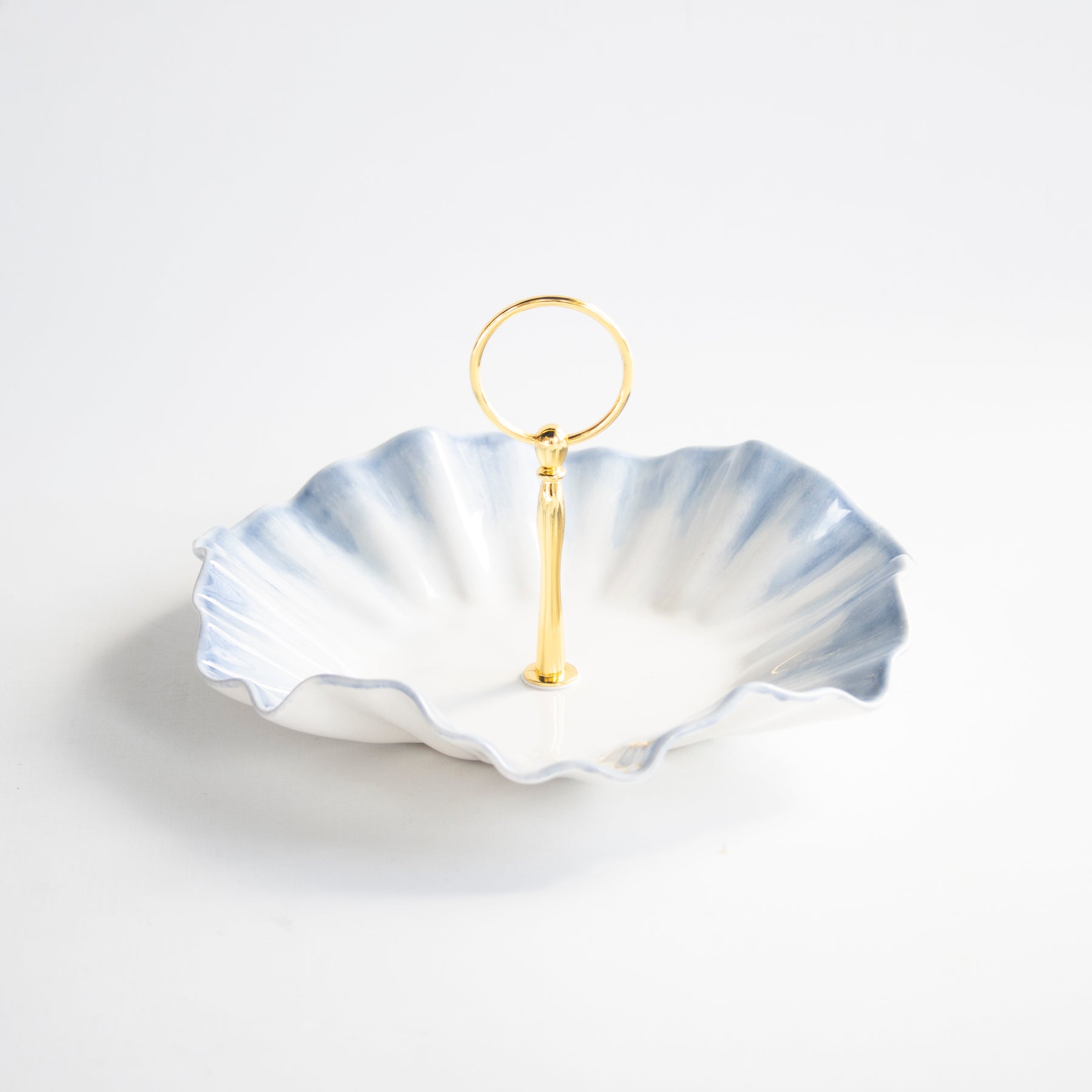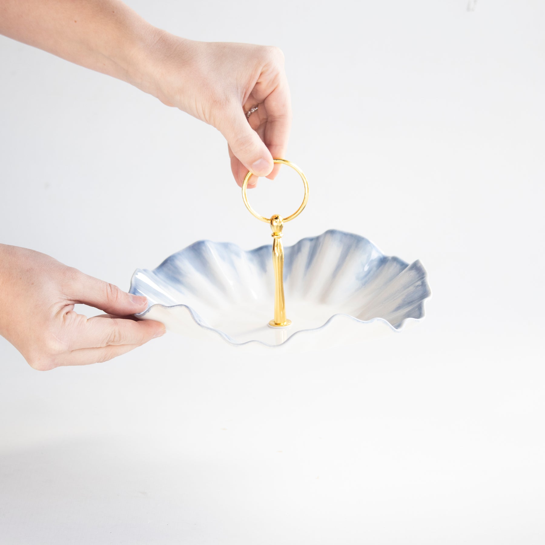 Handmade ceramic dish with high fire stoneware clay and glazes. Adorned with low fire 22K gold edges.