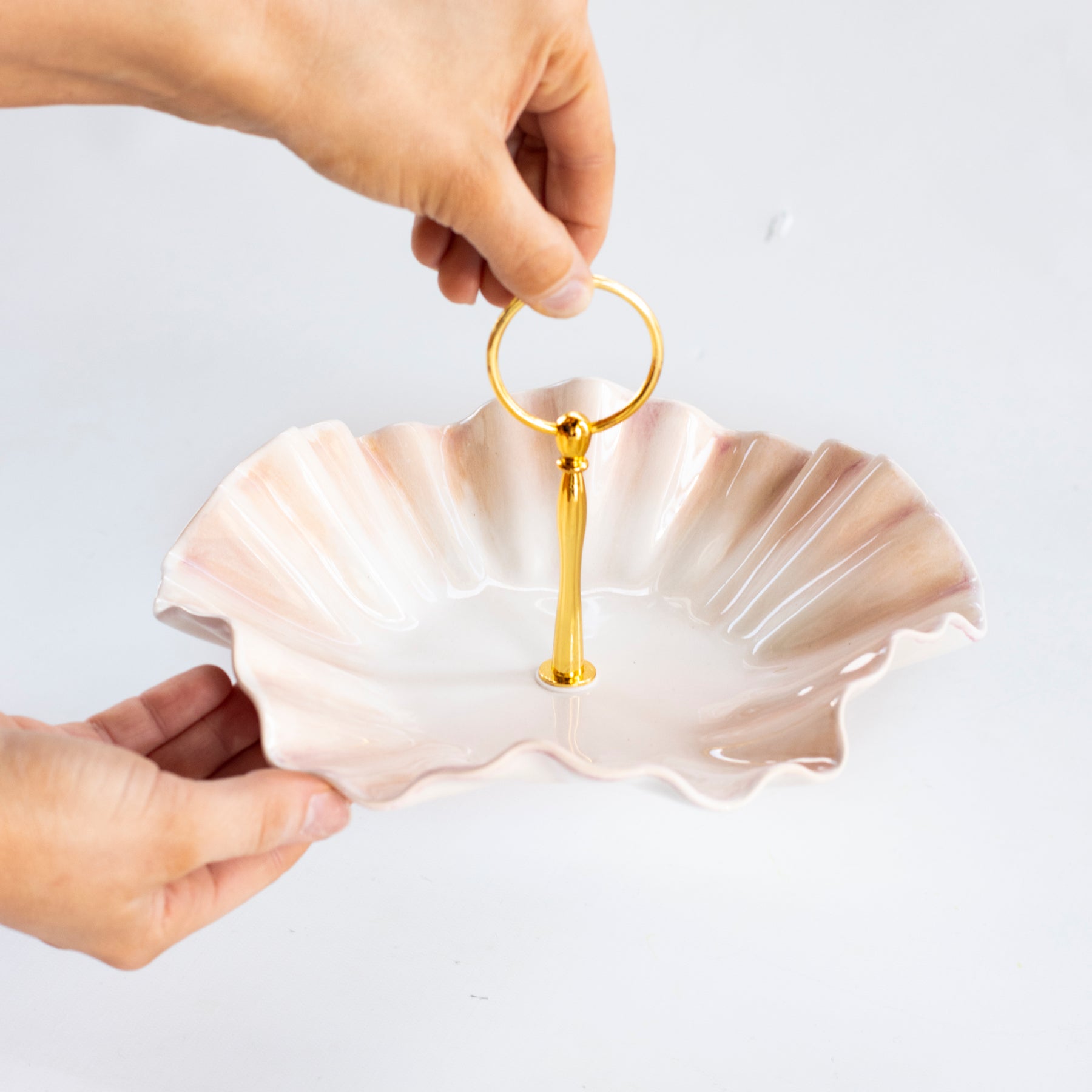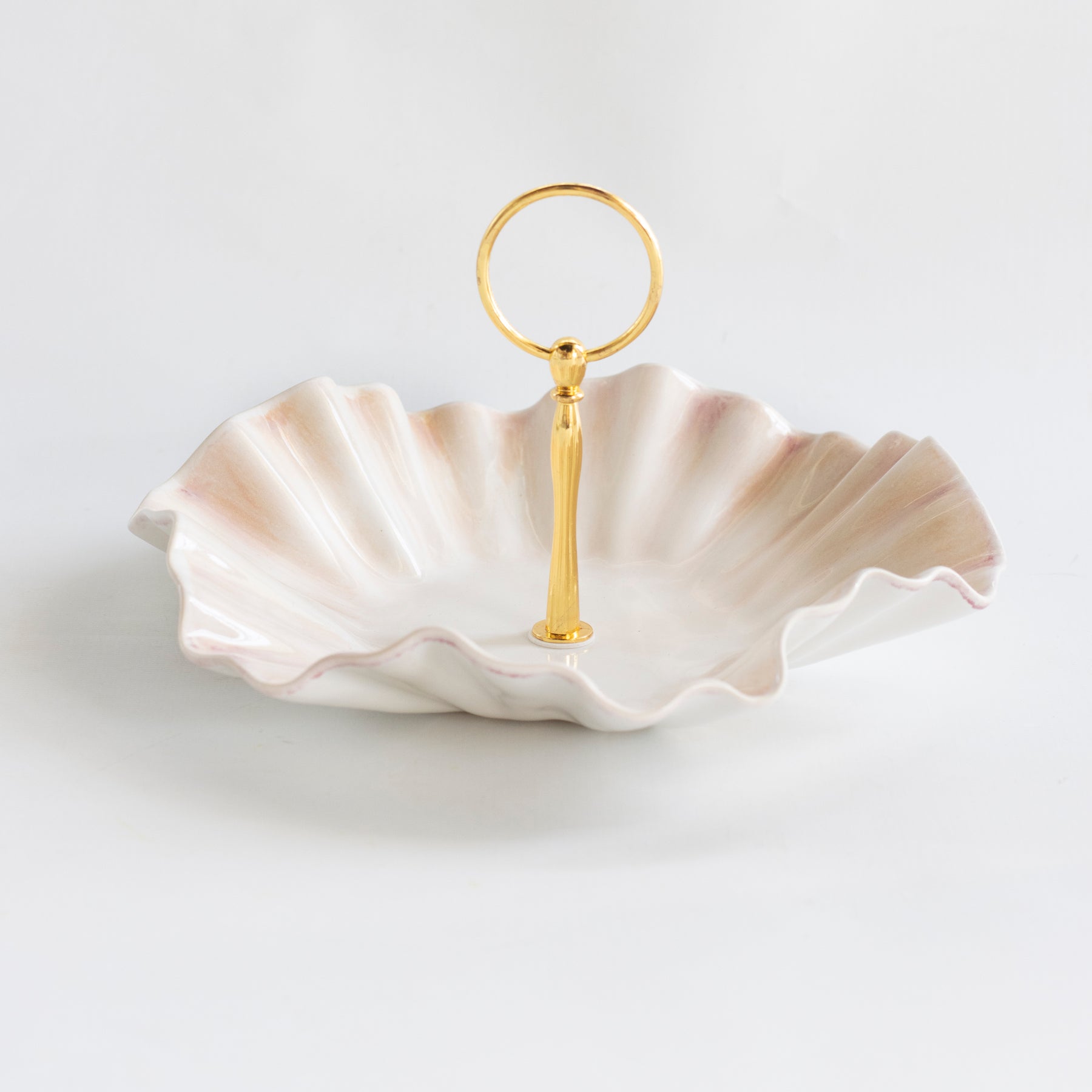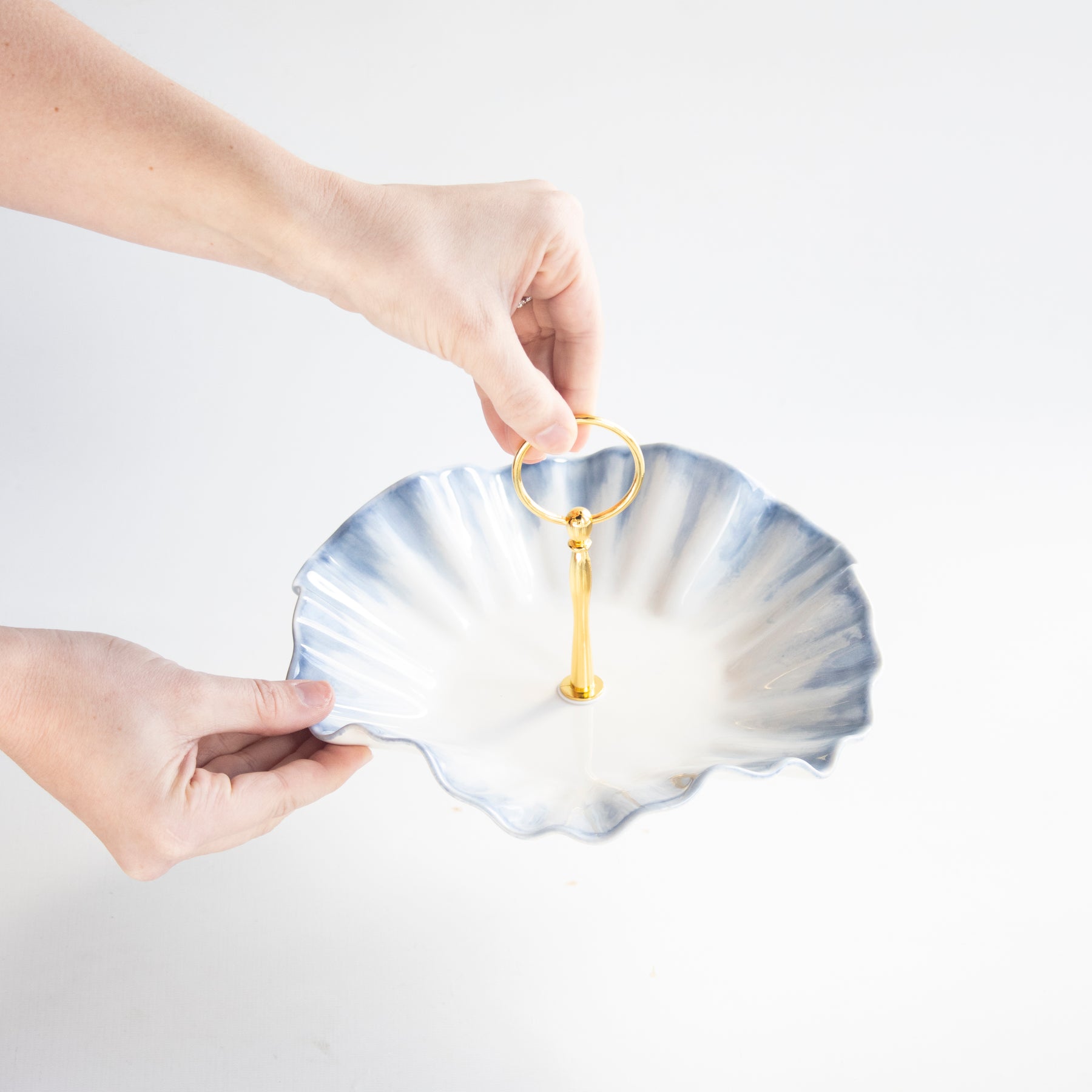 Handmade ceramic dish with high fire stoneware clay and glazes. Adorned with low fire 22K gold edges.