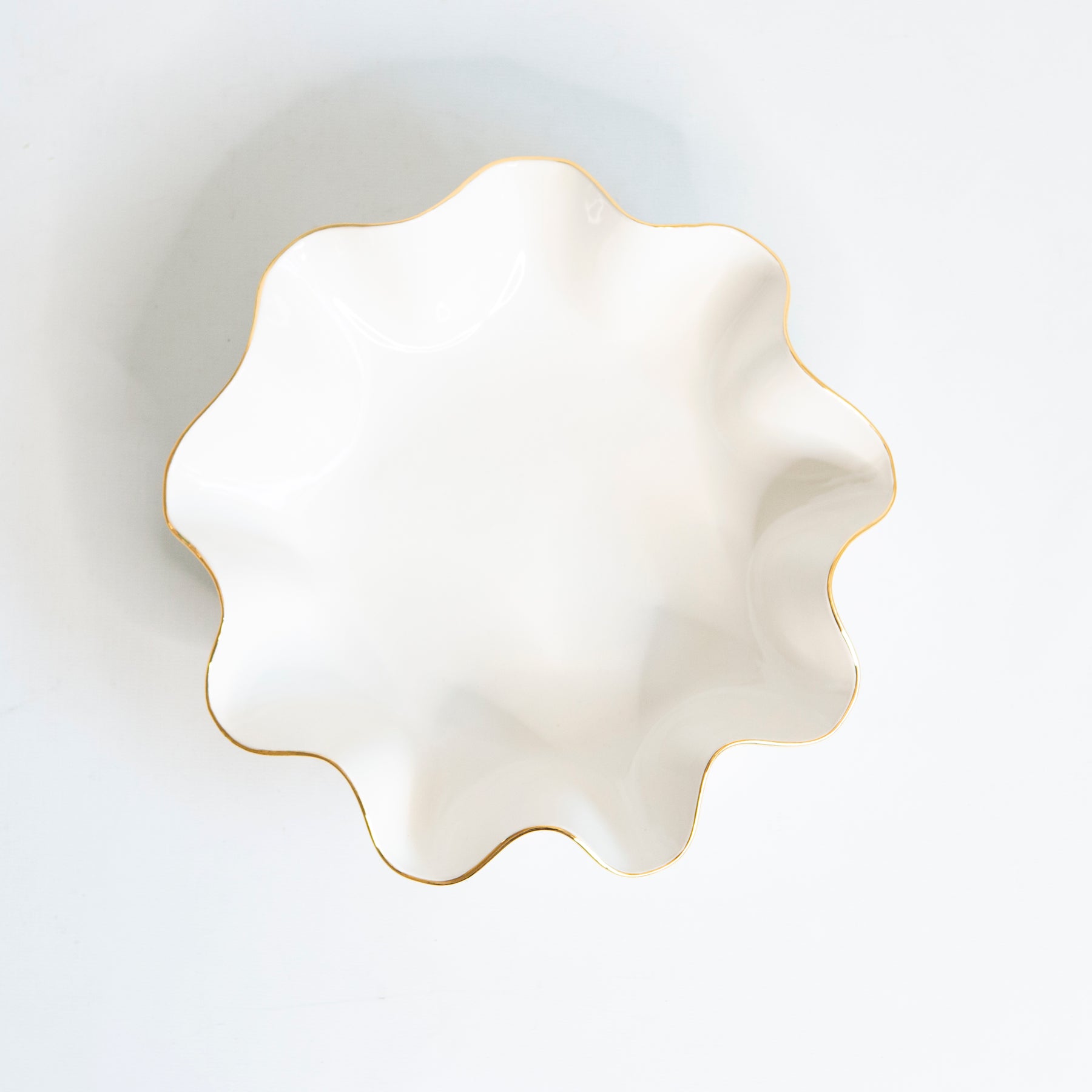 Handmade ceramic bowl with high fire stoneware clay and glazes. Adorned with low fire 22K gold luster overglaze.