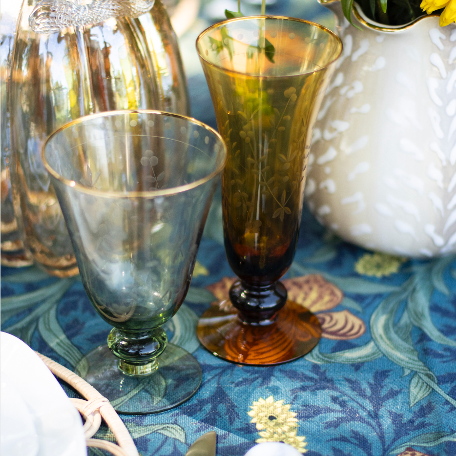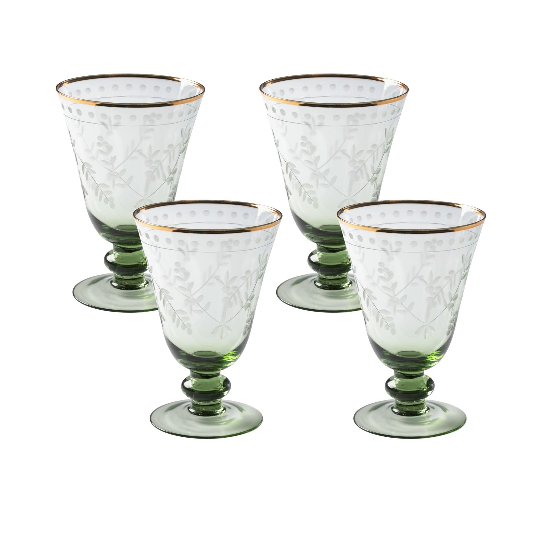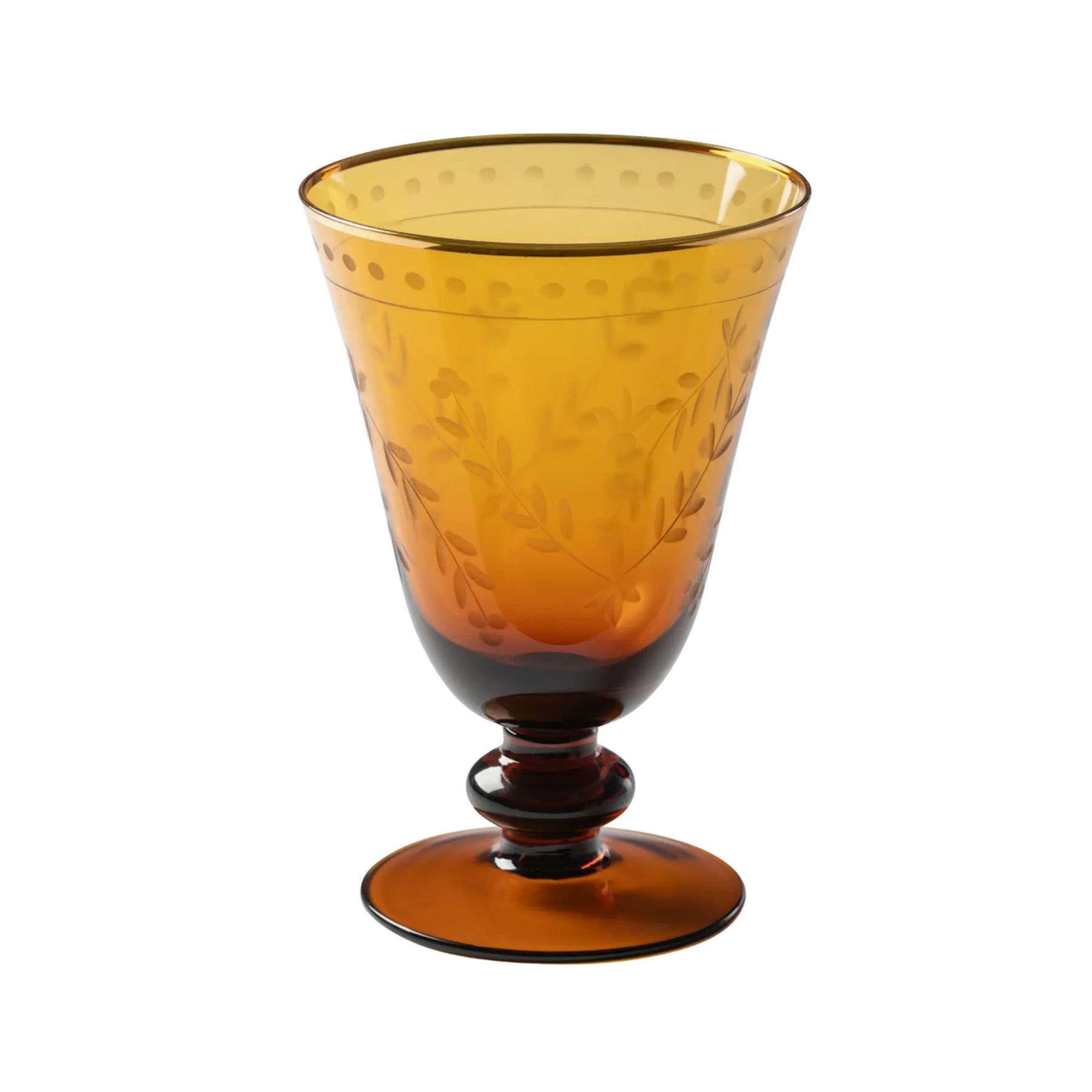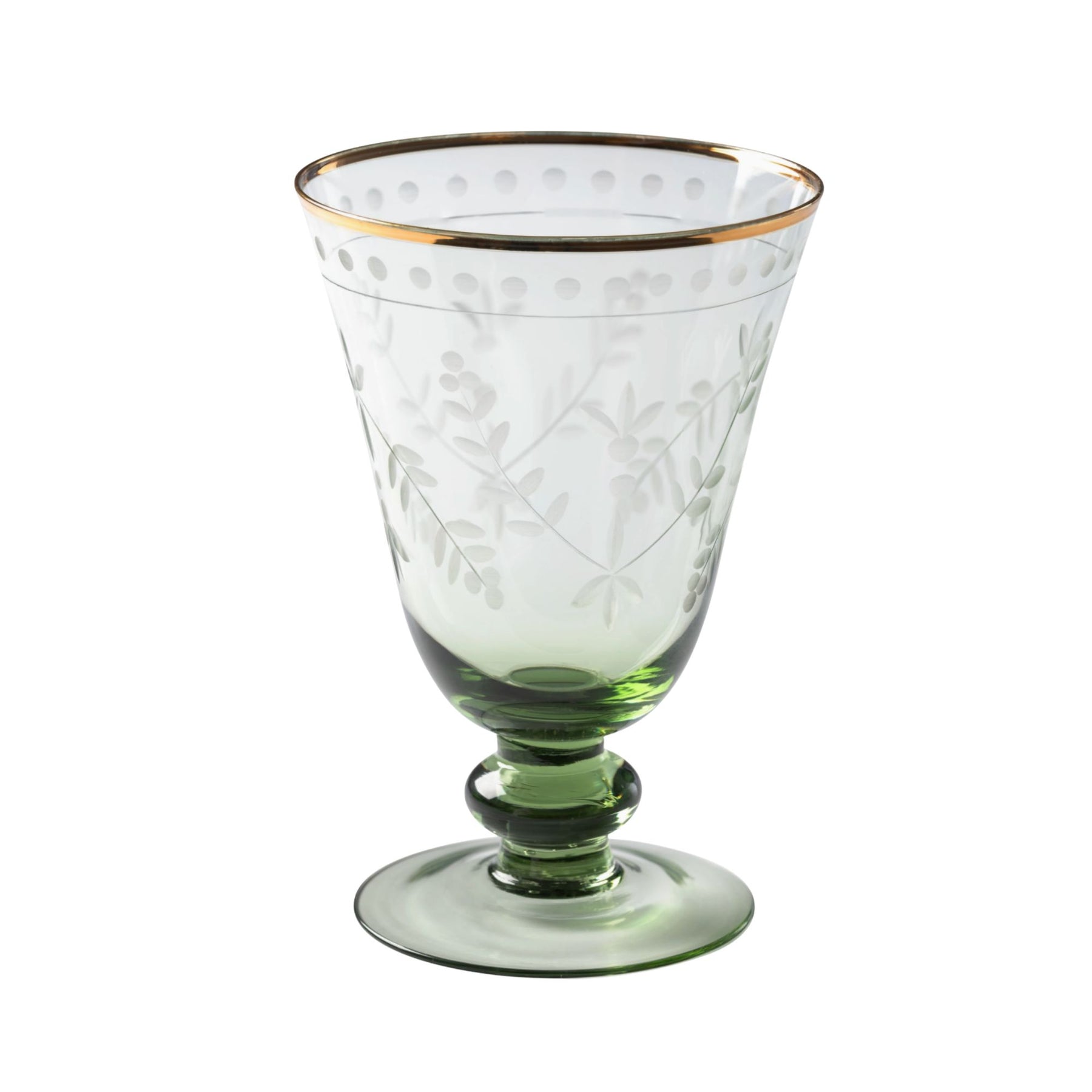 Add a touch of whimsy and charm to your home and kitchen décor with beautifully etched wine glass. Adorned with a delicate gold rim and intricate design, this hand-washed glass is the perfect addition to any barware collection.