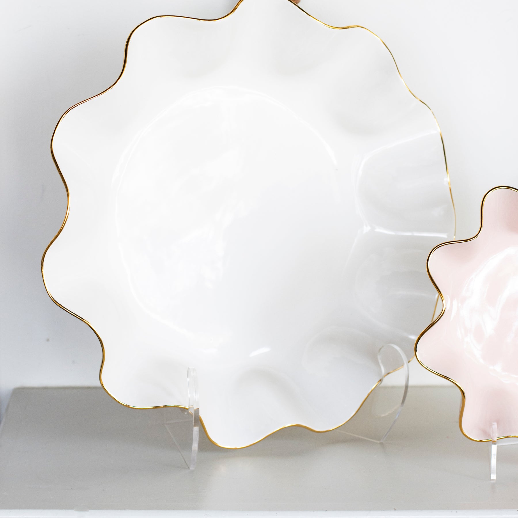 Our 9” Clear Acrylic Stand is the perfect size for showcasing a variety of serving dishes. This stand creates a stunning upright display for our Amabella, Gabriel, and Lucinda